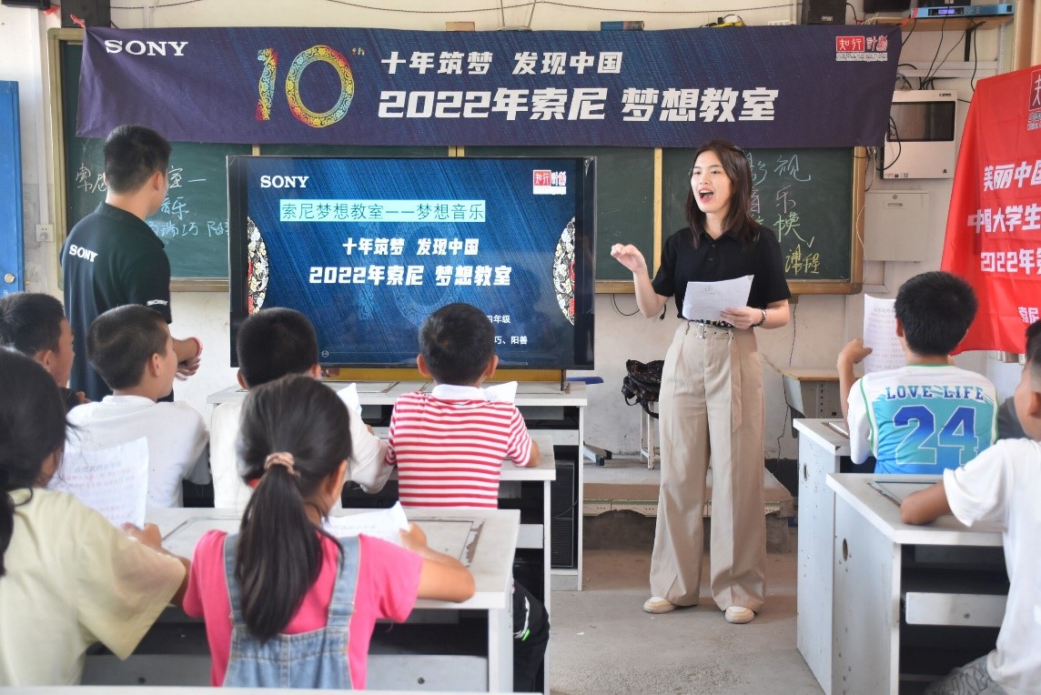 2022年是“索尼 梦想教室”开展的第十年,项目以“十年筑梦 发现中国”为主题,支持30所高校大学生团队,走进30所乡村学校建立“梦想教室”,捐赠电子教学设备、开展梦想课堂;同时探寻30余位乡村地区原乡工匠,开设“匠心造物,发现中国”实践课,以青年视角记录、发现、创意具有原乡特色的文创设计作品,帮助乡村孩子看见更广阔的世界,传承中华传统文化。