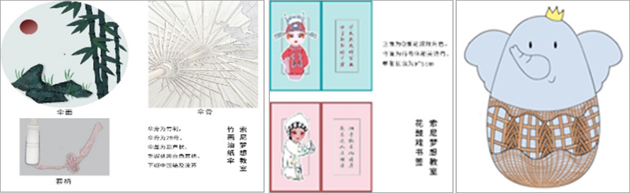 左一、二为中南财经政法大学根据湖南益阳“竹”文化和花鼓戏打造的文创竹伞和书签,右一为厦门大学团队根据福建龙岩武平县“象洞“地名设计的文创玩偶