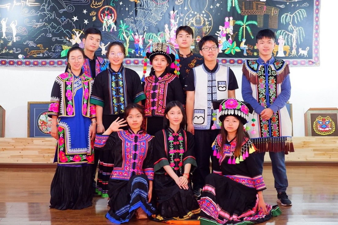 南京大学团队探访云南省楚雄彝族地区,队员们身着彝族刺绣“堆绣”的传统服装