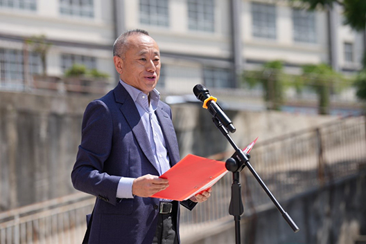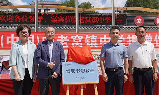 嘉宾为“索尼 梦想教室”揭牌,右到左依次为张校长、黄州长、吉田武司先生、范秘书长