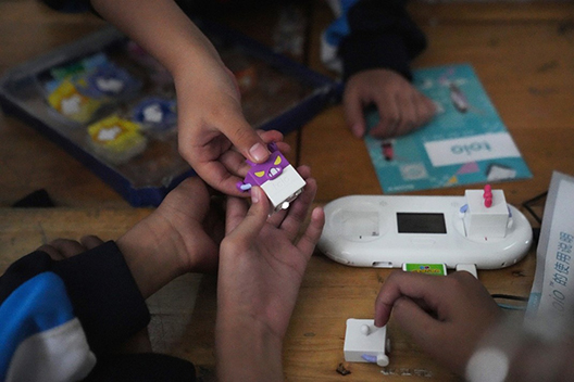 随后,“索尼探梦科技馆”馆长范宏军带队的实验员们为同学们呈现了一场趣味纷呈的科普秀。实验员以生活中简单易得的素材,巧妙地在知识中融入趣味,进行各类别出心裁的实验表演,与同学们共同在欢呼中放飞“气球火箭”。实验员们还开展了精彩的科普工作坊活动:探梦科学实验课-手工小照相机,通过简易素材亲手制作出属于自己的“小照相机”,在这一过程中学习光学和成像小知识;索尼toio™创意机器人套件和专用主题《出发!探索编程世界™》编程小课堂,同学们跟随主人公塔塔和洛洛进行了一场趣味冒险,在不同的地图场景上完成闯关,通过无屏卡片编程的方式,驱动核心Q宝机器人,启蒙和锻炼编程创意思维。